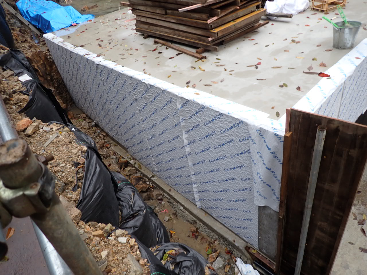 この写真の白い養生シートによって湿潤状態を長期間保持することが出来るんです!