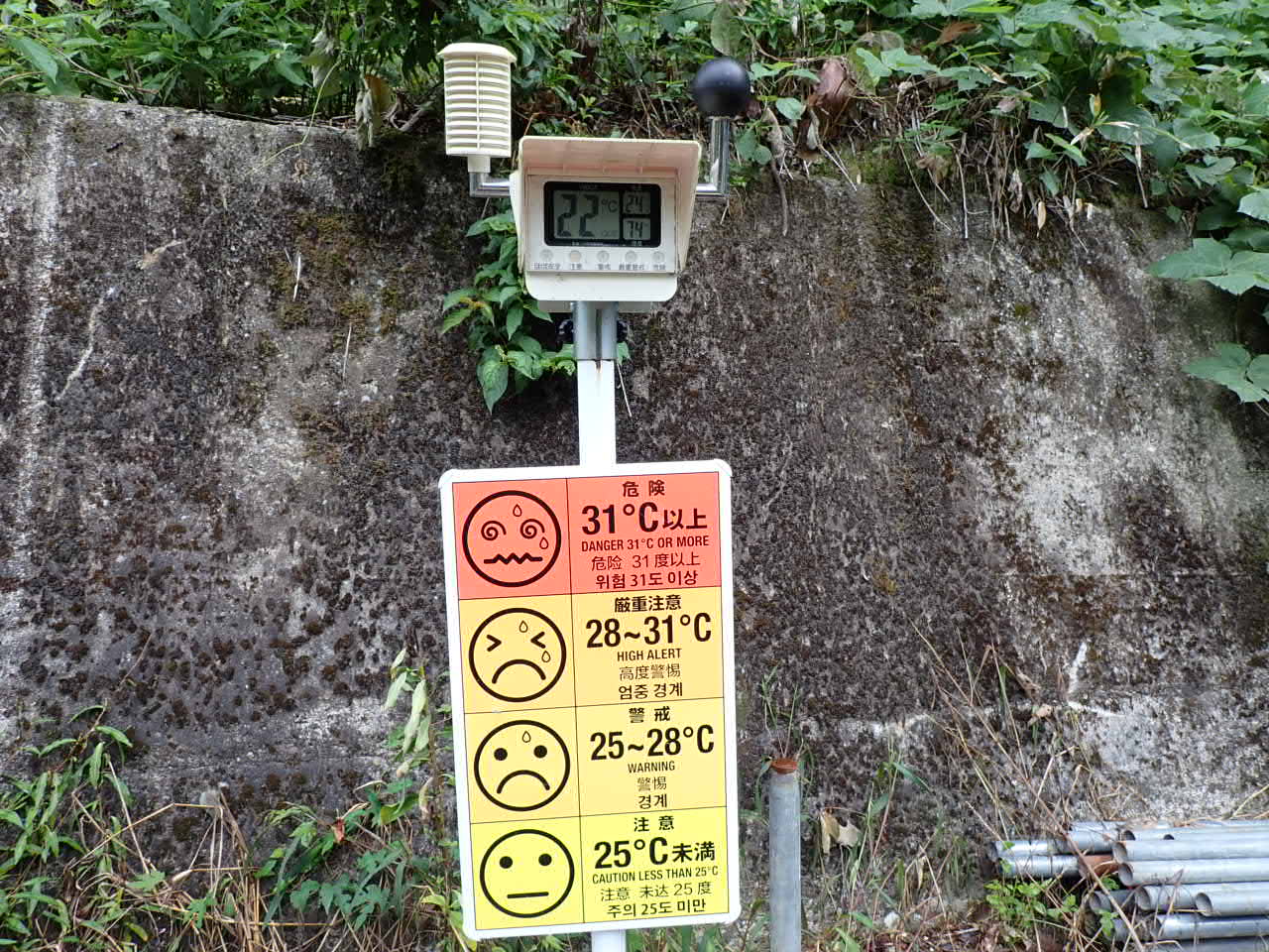 写真での値は暑さ指数=22℃なので、熱中症の危険度は非常に低い状態です。