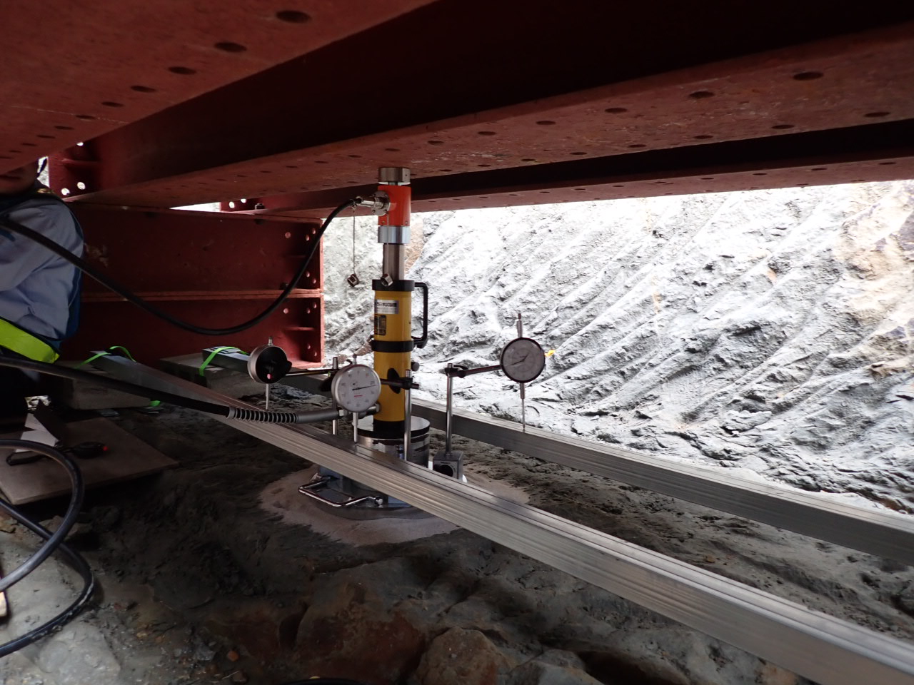 12トンの重さを反力に油圧ジャッキで地盤に力を加えていきます!!